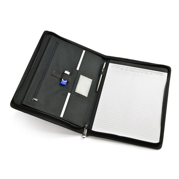 In ihrem Inneren enthält die Aktentasche eine große Tasche, eine Tasche mit Reißverschluss, 2 Plätze für USB-Sticks, eine kleine Taschen und Platz für einen Kugelschreiber und Notizbuch. - Maße 325 x 237 x 20 mm - Material Mikrofaser Polyester 600D Der Organizer kann auf Wunsch mit Ihrem Logo oder Schriftzug per Gravur (30 x 30 mm) oder Siebdruck (80 x 120 mm) veredelt werden.