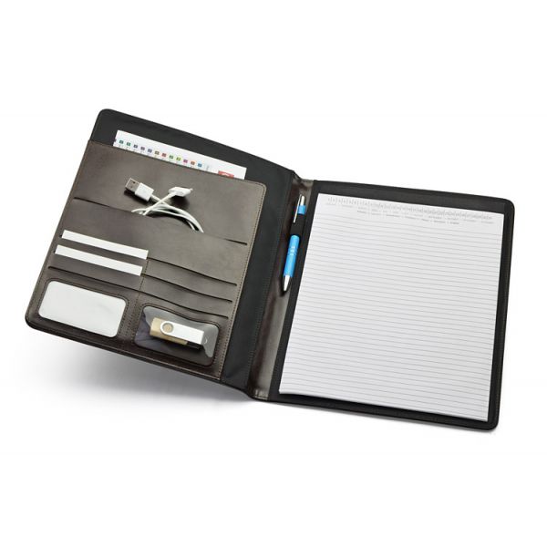 Eine elegante und klassische Aktentasche aus PU-Leder, in der all Ihre Unterlagen problemlos Platz finden. Im Inneren des Organizers befindet sich eine große Innentasche für Dokumente, eine mittelgroße Tasche und 6 kleine Taschen z. B. für Visitenkarten. Zudem ist die Aktentasche mit einem linierten Notizblock (20 Blatt A4) ausgestattet. - Maße 313 x 245 x 12 - Material PU-Leder - Farben Schwarz und Braun Gerne veredeln wir Ihr Werbeprodukt mit Ihrem individuellen Logo oder Schriftzug. Zur Auswahl stehen eine Gravur (30x 70 mm) oder ein Tampondruck (60 x 60 mm).