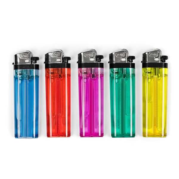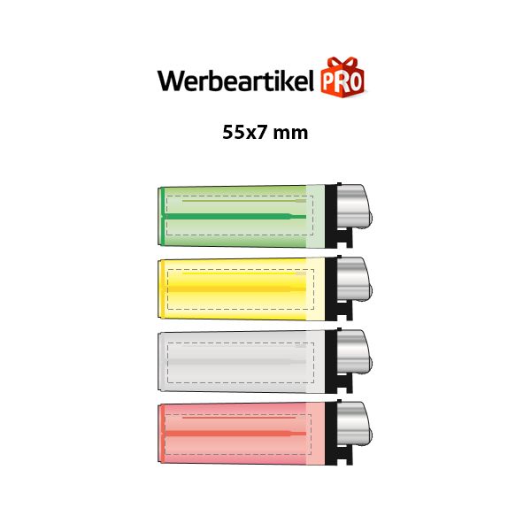 Lassen Sie Ihren Kunden ein Licht aufgehen. Mit unserem Werbeartikel Feuerzeug Modell "Roma" in den fröhlichen 5 Farben blau, rot, pink, grün und gelb steht diesem Vorhaben nichts entgegen. Auf Grund der transparenten Oberfläche kann problemlos die Füllmenge überprüft werden. Zusammen mit Ihrer aufgedruckten Werbung wird dieses Feuerzug mit Reibradmechanismus zum nützlichen Alltagsgegenstand. Das Werbemittelfeuerzeug aus Kunststoff mit Zündstein ist bereits ab einer geringen Menge ab 100 Stück bestellbar und wird nach Ihren Vorstellungen in der maximalen Größe 55 x 15 mm mit Ihrem Logo/Schriftzug mittels Tampondruck bedruckt. Auf Wunsch ist auch ein beidseitiger Druck möglich. Sie erhalten diesen Artikel im Farbmix, d.h. jede Farbe im gleichen Anteil. Eine einzelne Farbe kann nicht ausgewählt werden.
