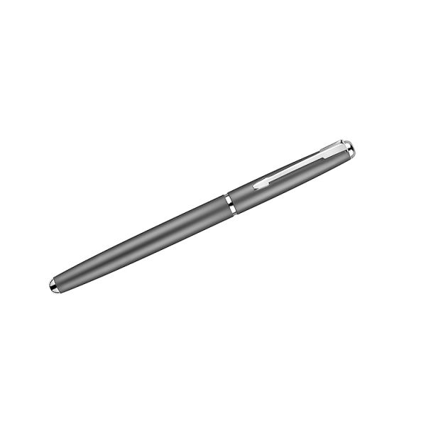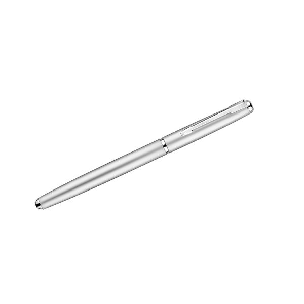 Ein bezaubernder Tintenroller aus Metall veredelt mit einzelnen silbernen Elementen, die ihm das gewisse Etwas verleihen. Erhältlich ist der Stift in den Farben Silber, Grafit, Weiß, Schwarz und Marineblau. Der Kugelschreiber misst 129 x 5 mm und kann per Laser mit Ihrer individuellen Gravur veredelt werden.